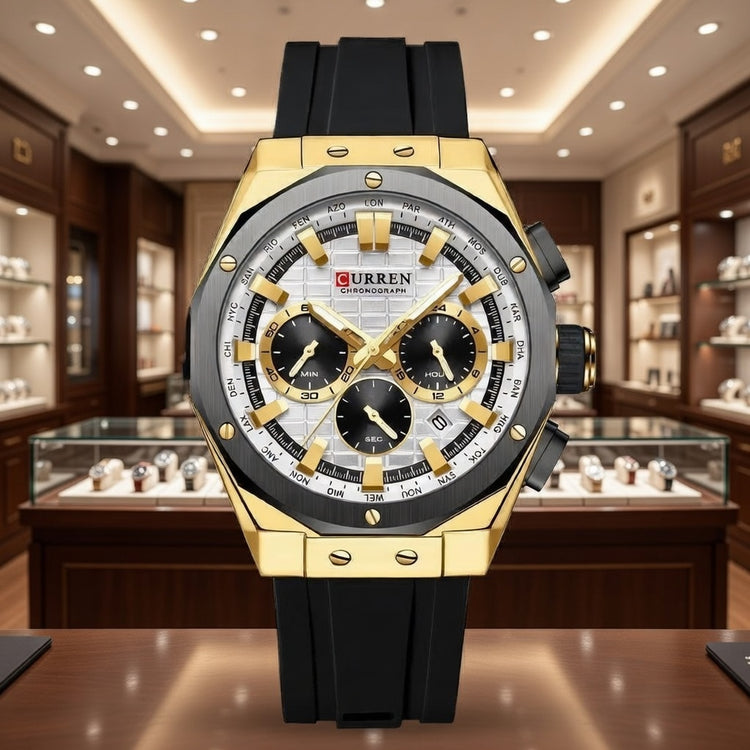 Relojes Curren con correa de silicona, cronógrafo de negocios