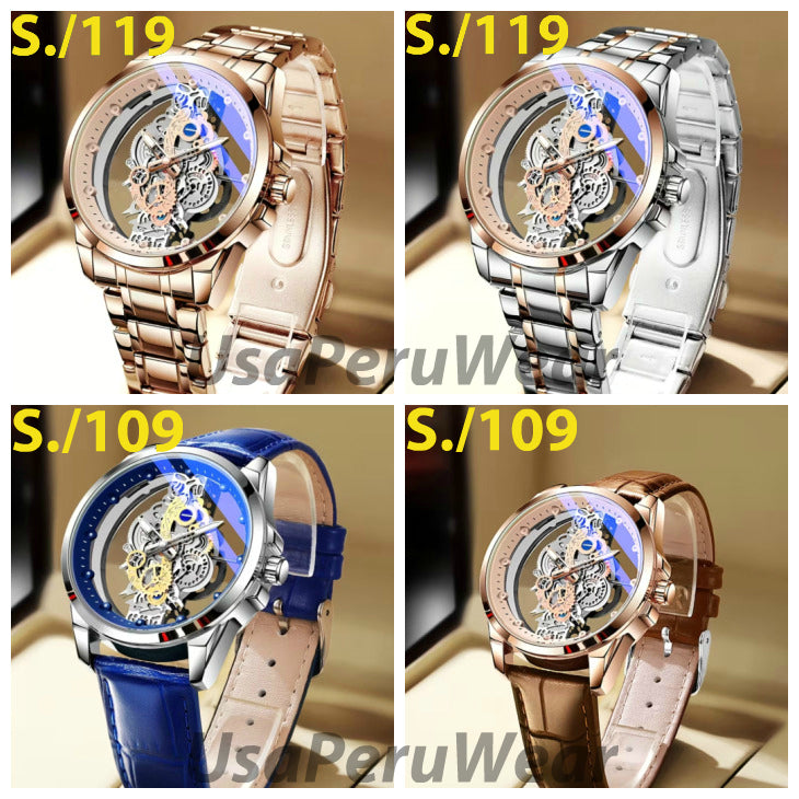Reloj De Cuarzo Tipo Skeleton con Correa De Cuero o Acero