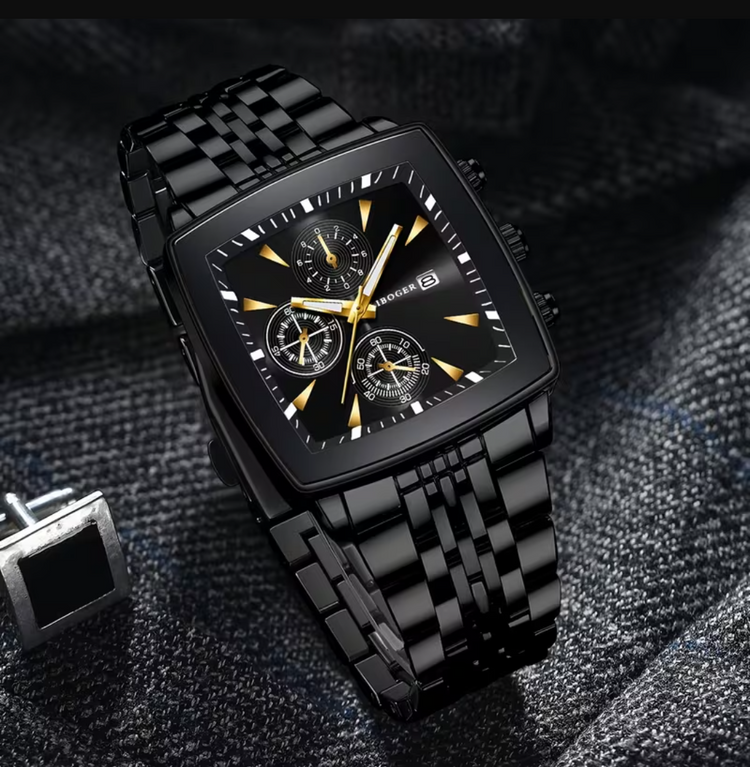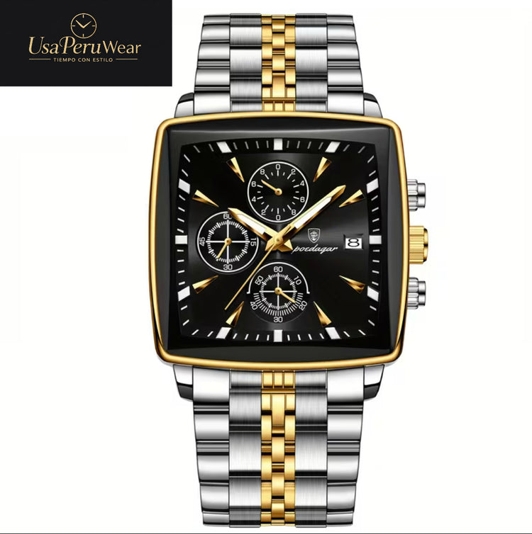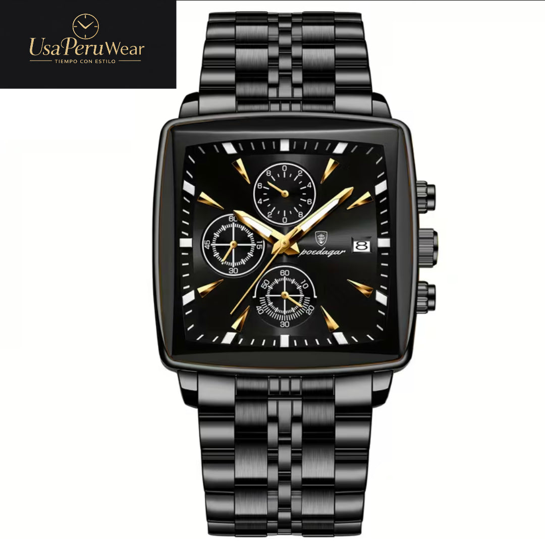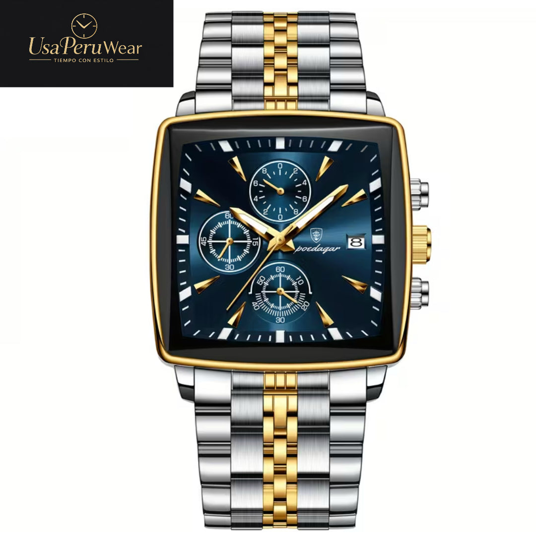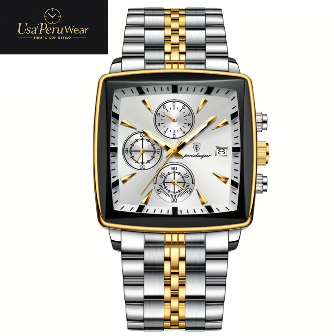 Reloj Poedagar de lujo con calendario y esfera cuadrada. Elegante y atractivo.